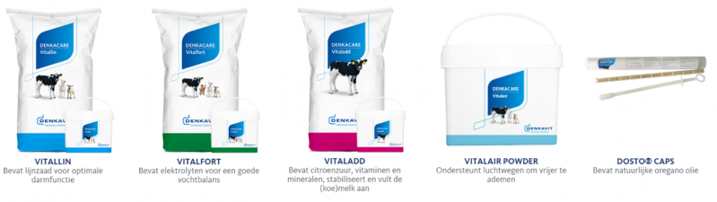 Bij kalveren die een extra steuntje in de rug nodig hebben of tijdens risicovolle perioden biedt de Denkacare lijn een passende ondersteuning en uitkomst.